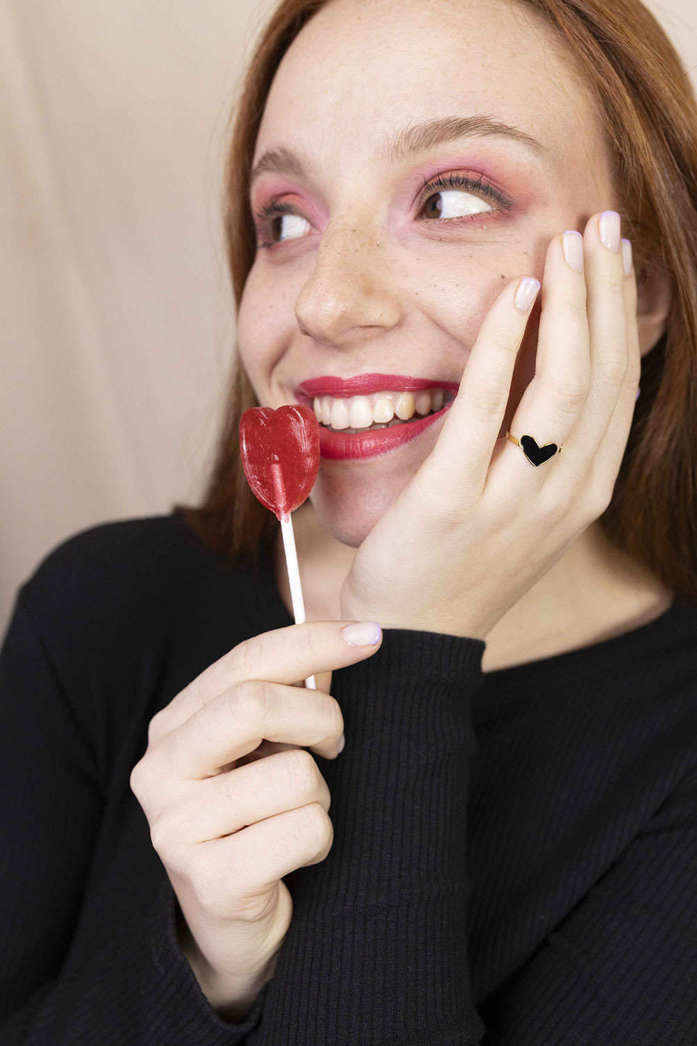 Corazon en enamel negro, abierto por la parte superior, ajustable.