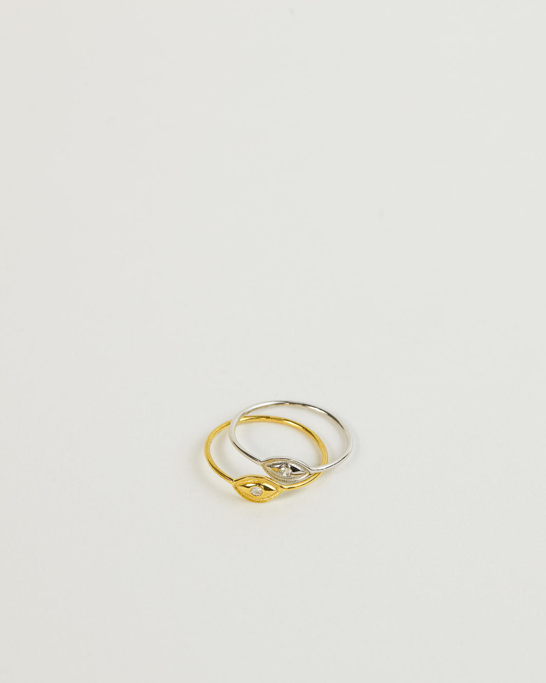 Anillo Ojo de plata de ley 925 y baño de oro con circonita. Súper cómodo y versátil ya que puedes utilizarlo con cualquier estilo. Si buscas una joya minimalista, aquí la tienes.