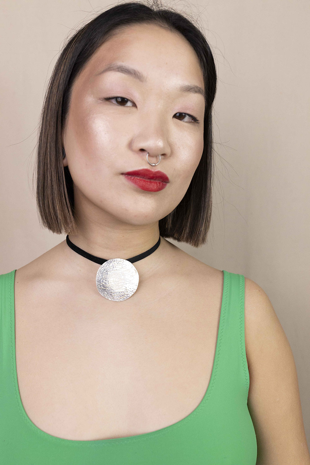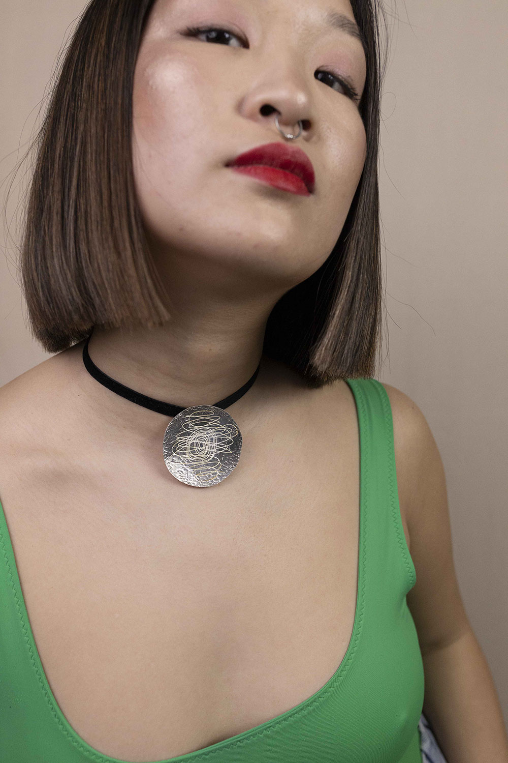 ¿List@ para brillar con elegancia y un toque de rebeldía? Este choker de plata 925 es todo lo que necesitas para destacar sin perder tu toque canalla. Su cordón de antelina negro ajustable se adapta a tu estilo, mientras que la medalla en plata de ley martelé le da un aire sofisticado con un acabado único.