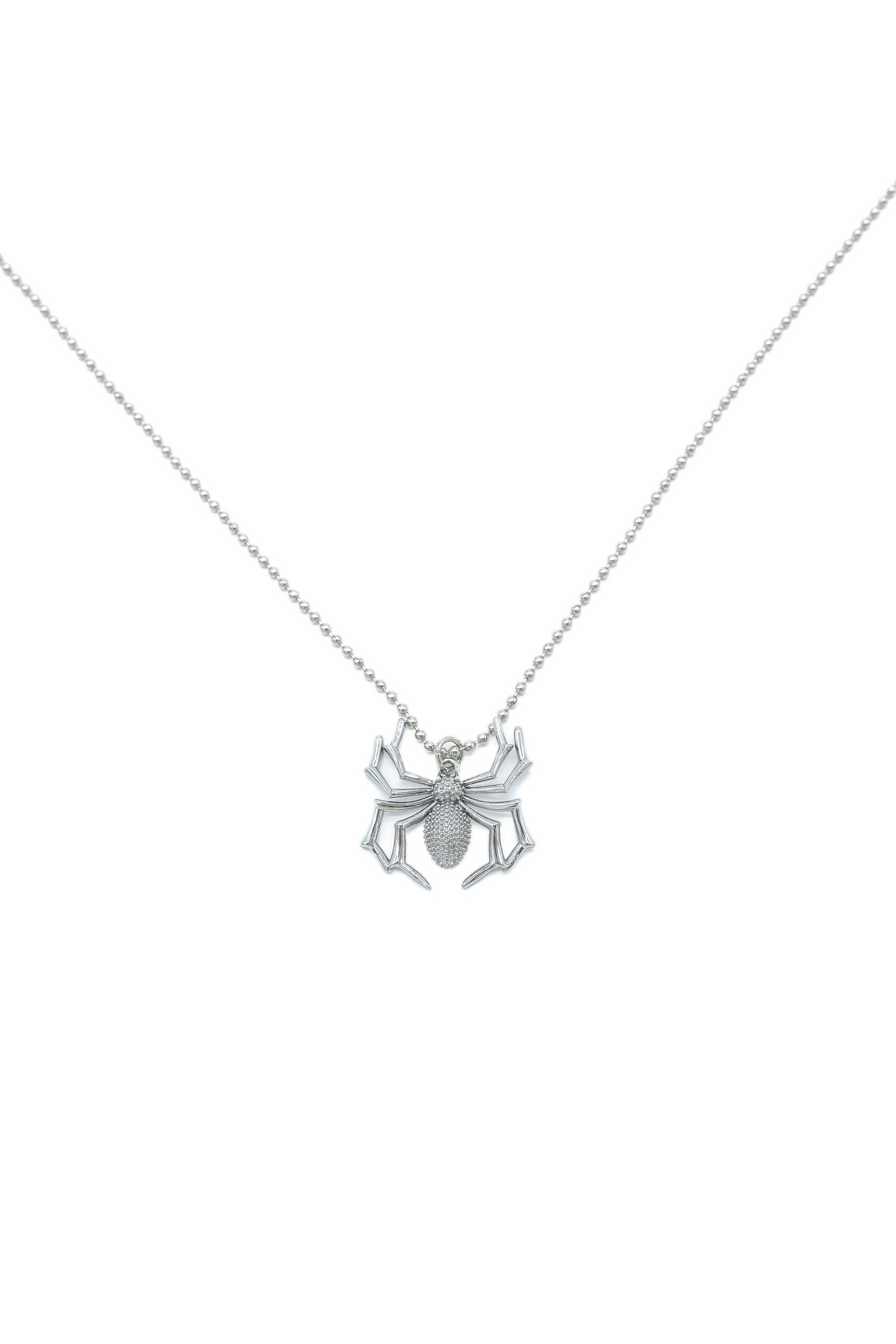 Collar con cadena de bolitas y colgante araña ( a juego con pendientes Aracnic ) acero plateado