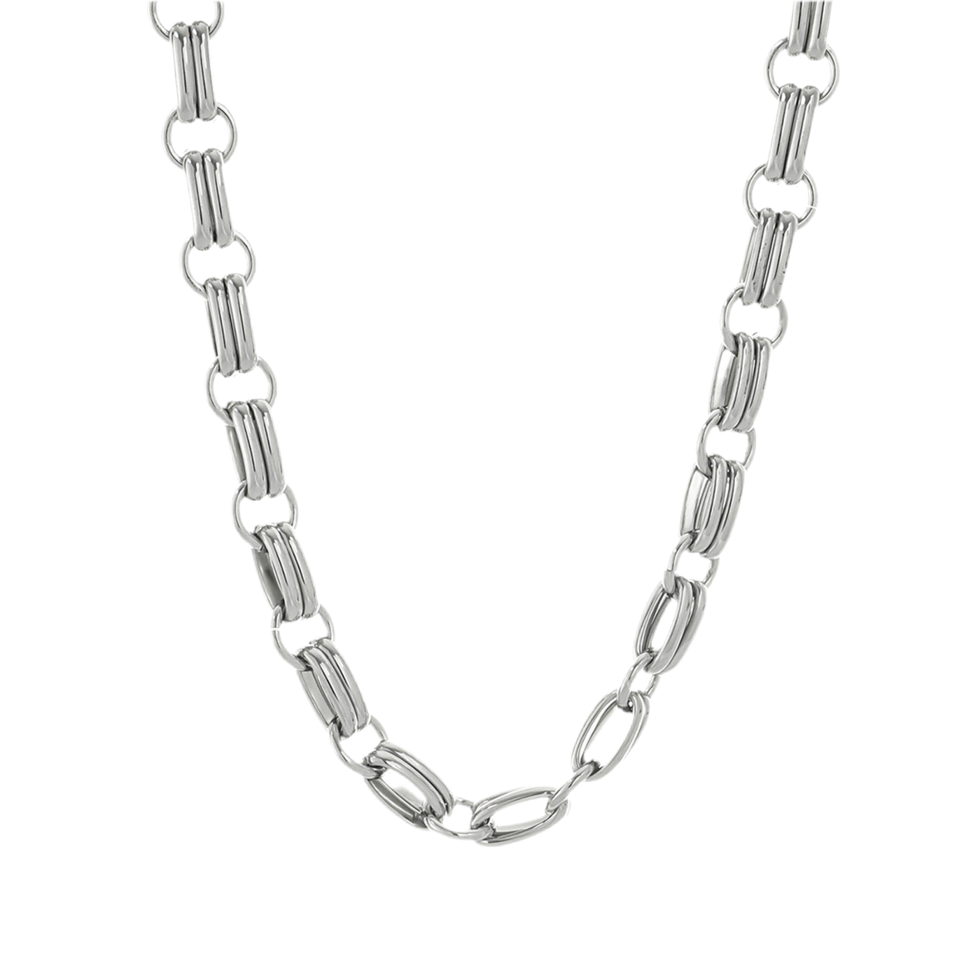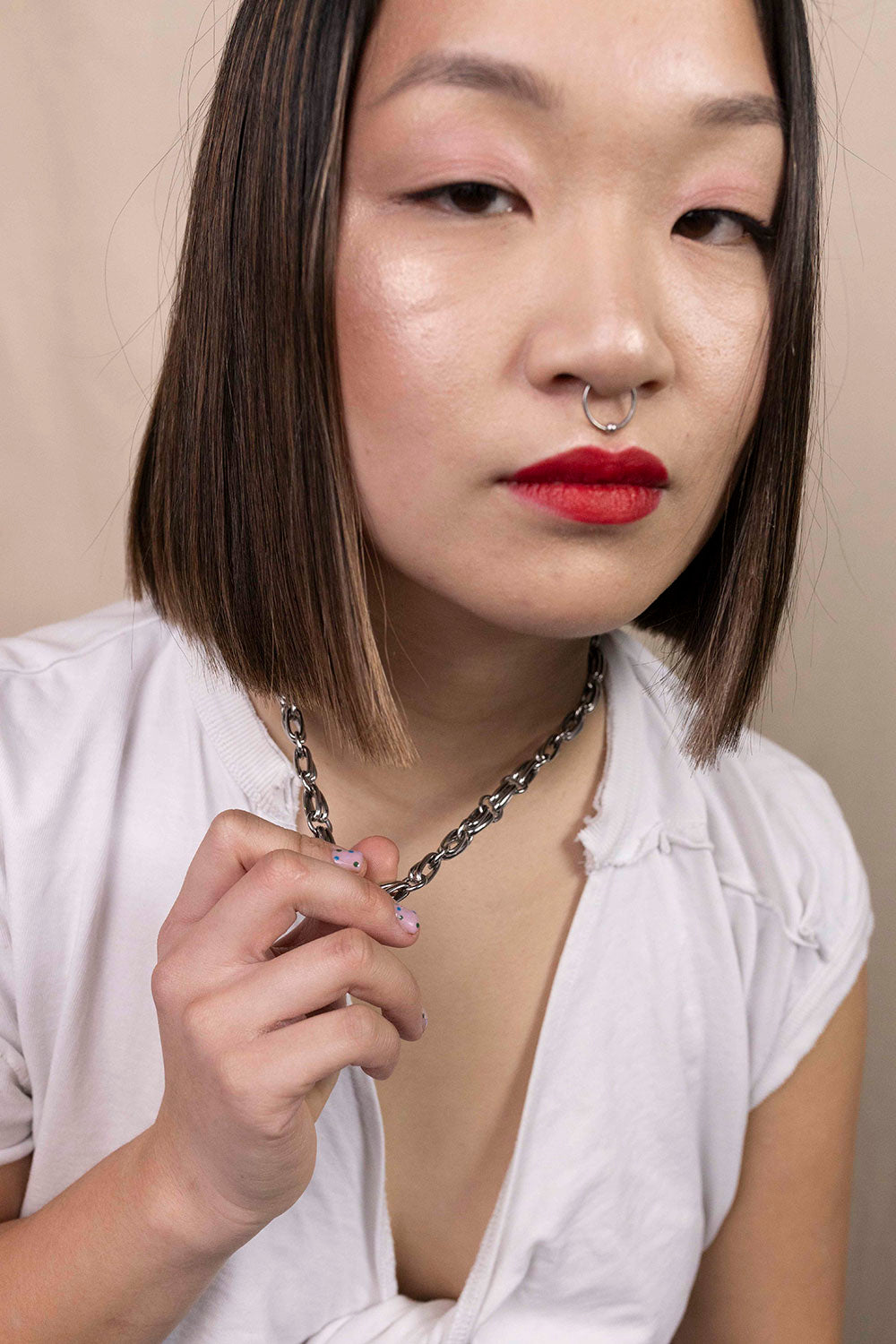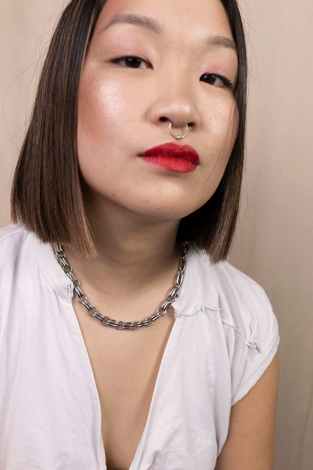 Double Trouble es un collar XL de acero inoxidable con eslabones dobles, diseñado para quienes no saben pasar desapercibidxs.