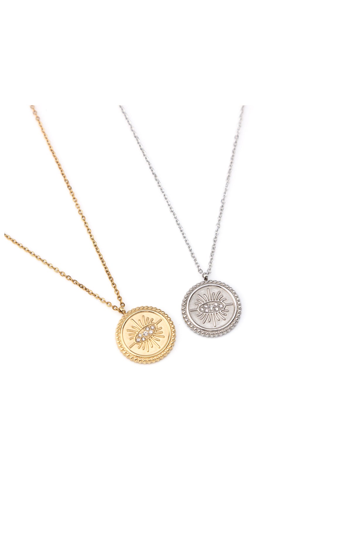 La cadena fina resalta la medalla, haciéndola la protagonista de cualquier look. Disponible en dos acabados: