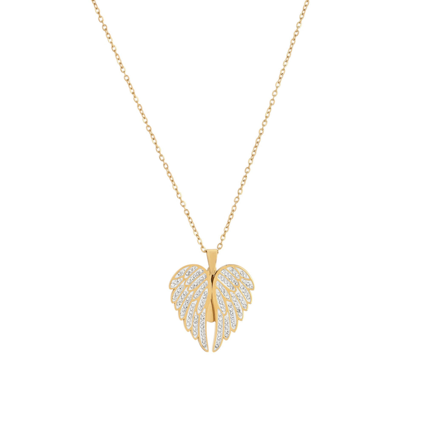 Diseñado en acero inoxidable 316L con acabado plateado brillante, este collar incorpora un colgante central con dos alas en pavé de circonitas que abrazan una placa metálica tipo púa. Un homenaje a la autoafirmación, al deseo y al poder de ser quien eres, sin vergüenza, sin armarios y sin pedir perdón.