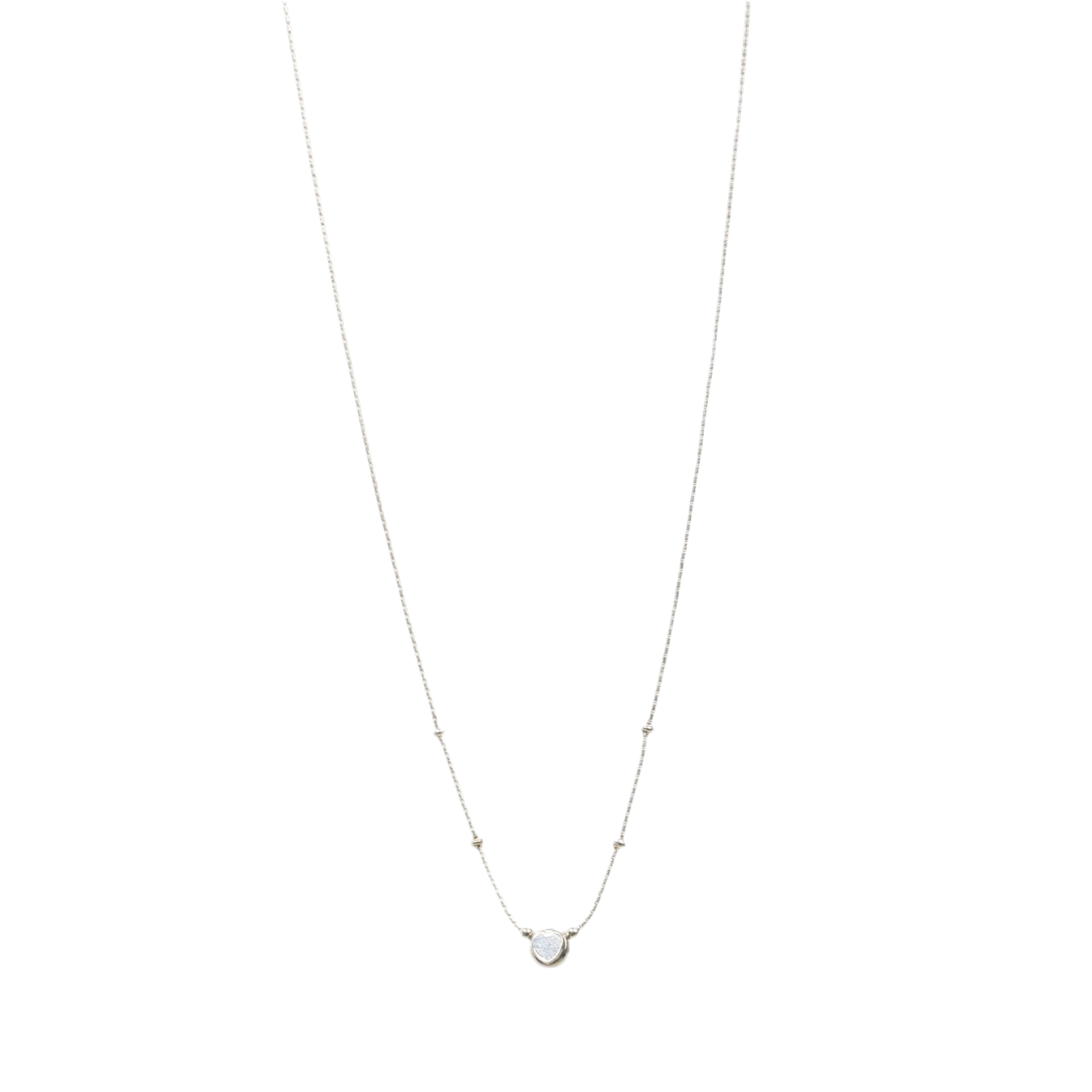 Collar de plata de ley 925 con cadena de cola de ratón con bolitas decorativas, finalizada en un colgante mini de corazón de 4 mm.