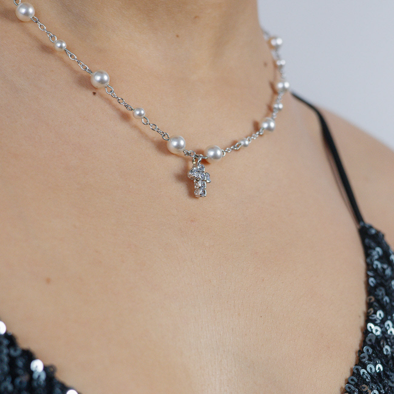 El Collar Tiara Vintage es una joya icónica que mezcla perlas de Mallorca con un diseño bañado en rodio, logrando un acabado brillante y duradero. Su charm en forma de cruz con circonitas blancas aporta un toque atemporal y sofisticado, ideal para elevar cualquier look de día o de noche.