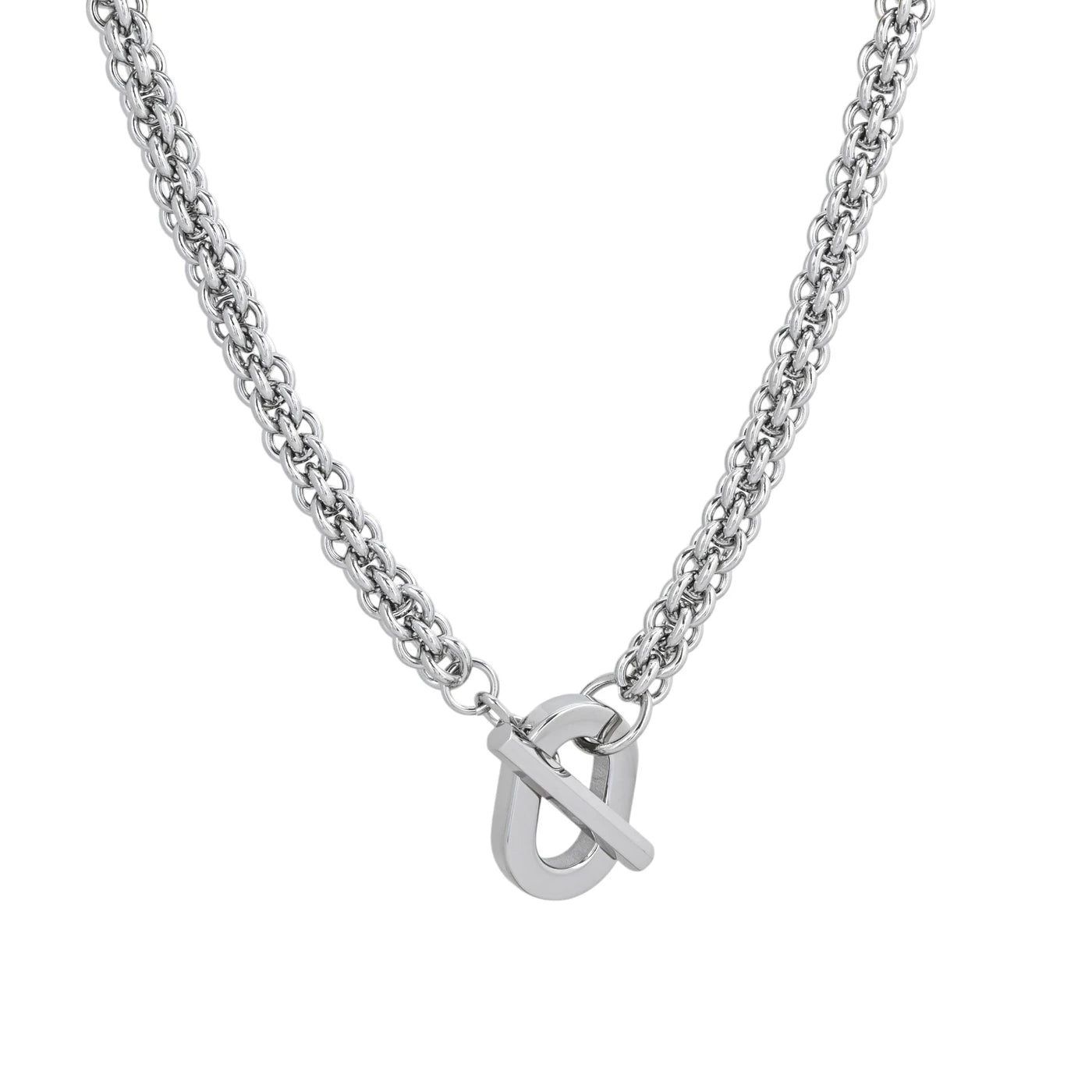 LOCKDOWN es un collar unisex de diseño robusto y elegante, disponible en acabado dorado o plateado. Fabricado en acero inoxidable 316L de alta calidad, este collar con eslabones dobles y cierre tipo toggle frontal aporta un toque de fuerza y sofisticación a cualquier look.