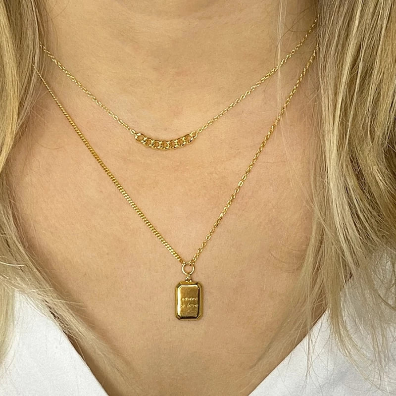 El Collar Where is Love está fabricado en plata de ley 925 con un baño de oro de 18 quilates que aporta un brillo cálido y duradero. Su diseño combina dos tipos de cadena —una más fina y otra más gruesa— creando un equilibrio perfecto entre delicadeza y carácter.