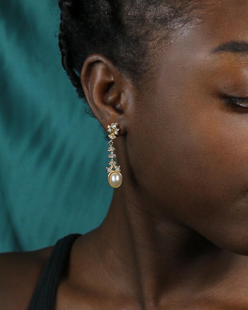 Pendientes Dafne, con forma de lágrima, perfectos para una ocasión especial, bañado en oro de 18quilates, circonita blanca y perla.