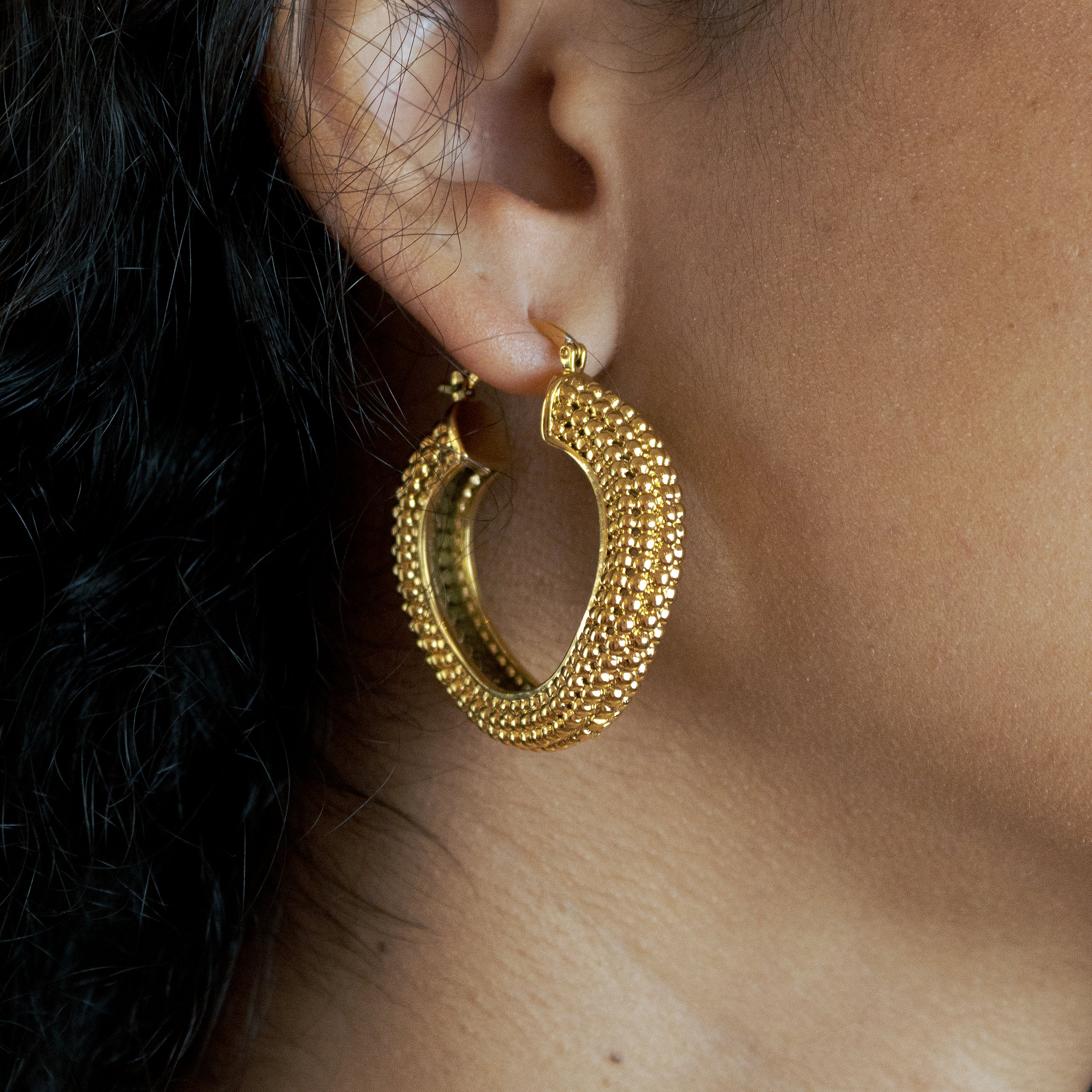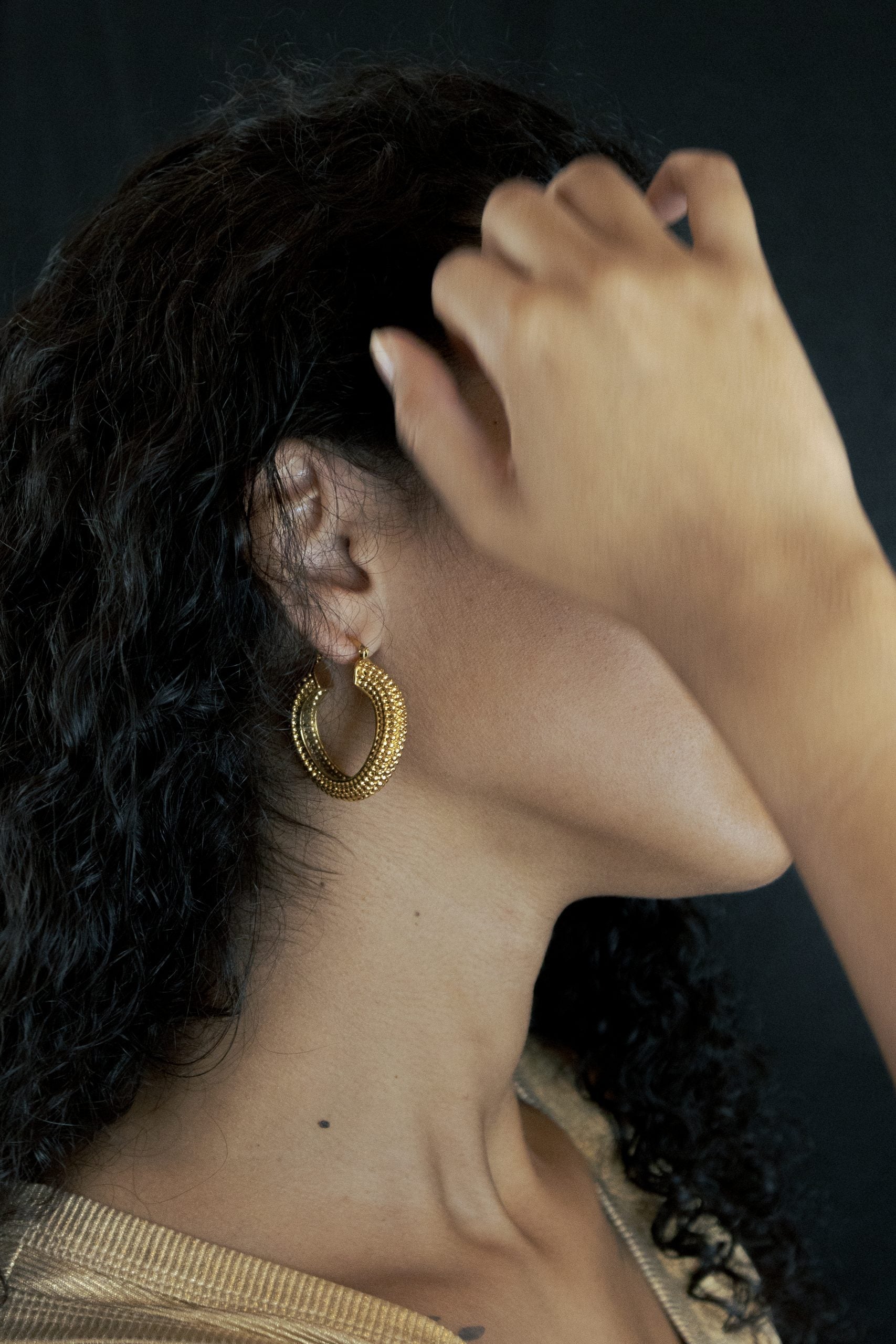 Descubre la perfecta fusión entre estilo comodidad con nuestros pendientes de acero con un elegante baño de oro de 18 quilates, con resistencia al agua y propiedades antialérgicas.