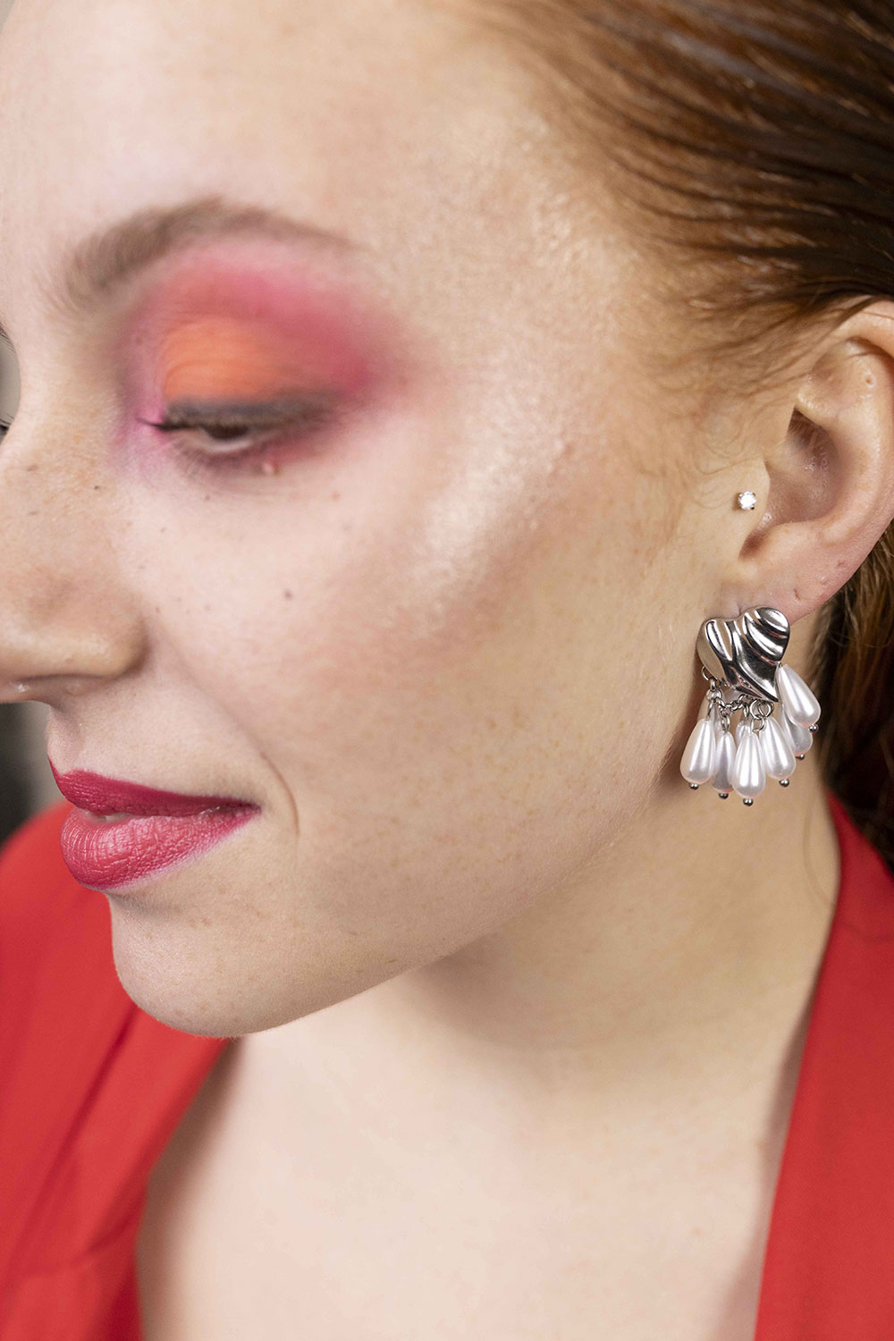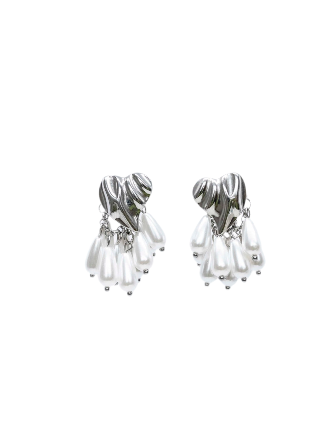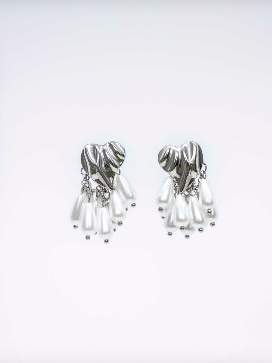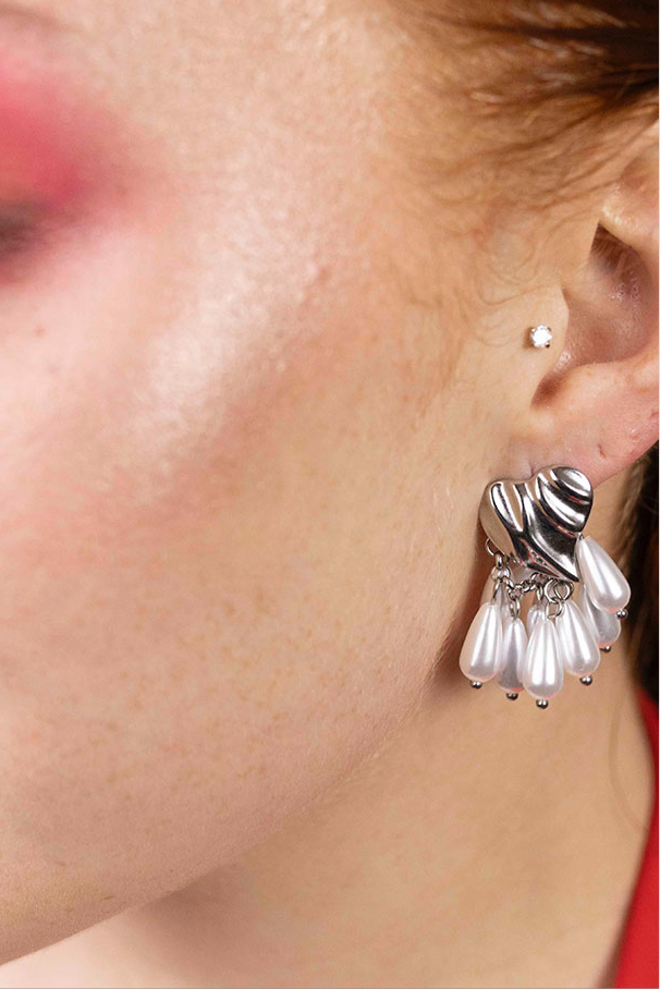 Pendientes de acero inoxidable con 10 perlas en forma de gota plateado.