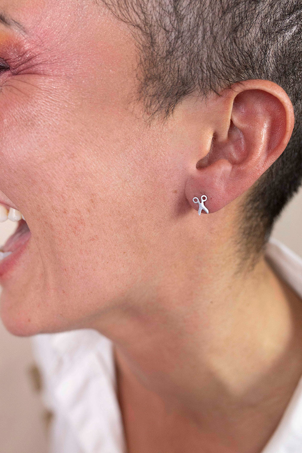Ligeros, cómodos y fáciles de combinar, estos pendientes stud de plata son perfectos tanto para el día a día como para dar un giro irreverente a tus looks más atrevidos. Un guiño creativo para artistas, peluquerxs, diseñadores o cualquier persona que disfrute de piezas icónicas con un toque divertido.