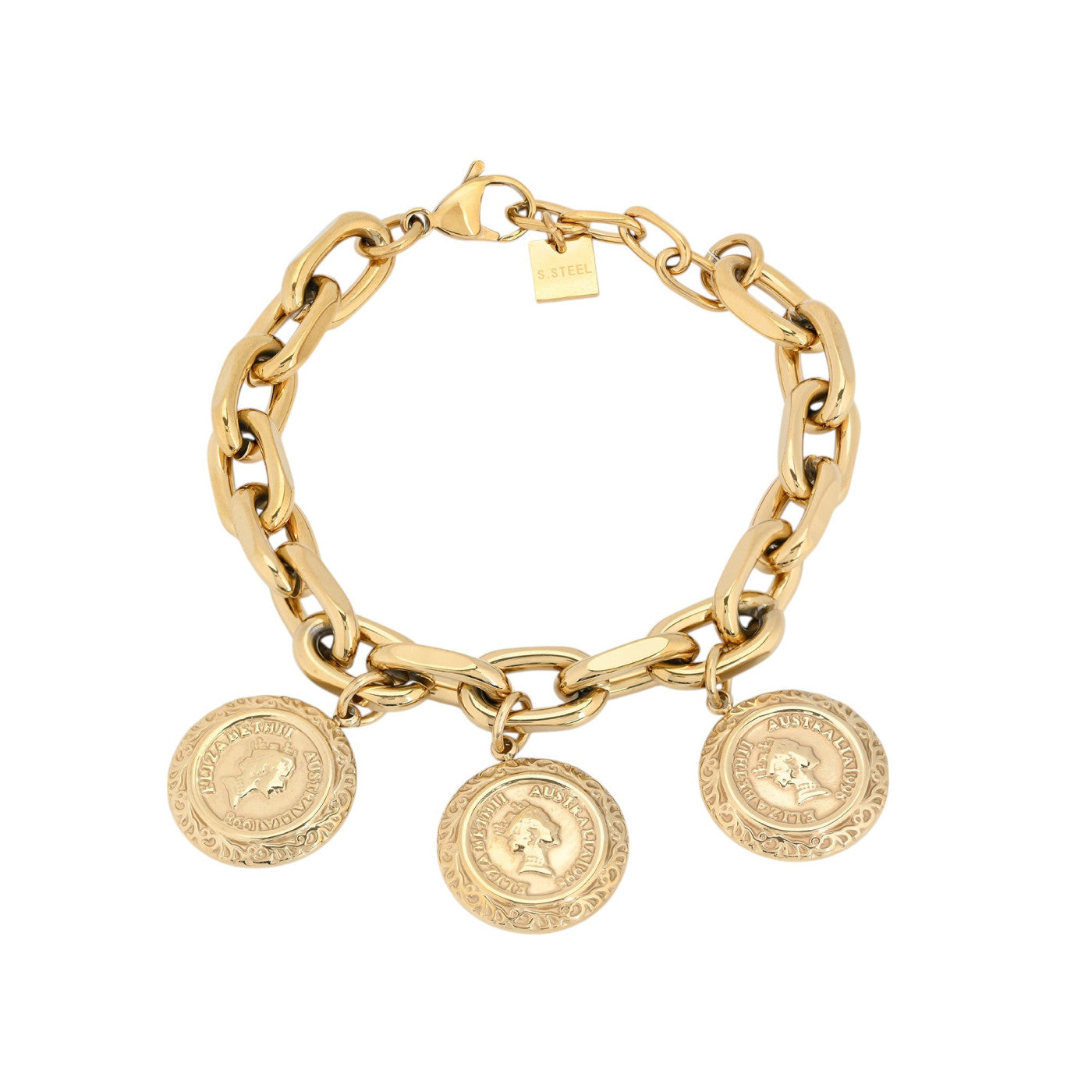 Pulsera Aurea Coins – Acero inoxidable chapado en oro 18k con charms de moneda